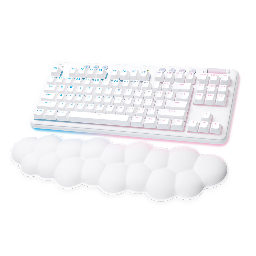 De The Aurora Collection, el G715 es un teclado inalámbrico LIGHTSPEED y Bluetooth® para juegos diseñado para ofrecer confort con el mullido reposamanos incluido. Totalmente equipado con iluminación RGB y los interruptores mecánicos GX que tú elijas. Disponible en Blanco White Mist. Accesorios de combinación de colores a la venta por separado.