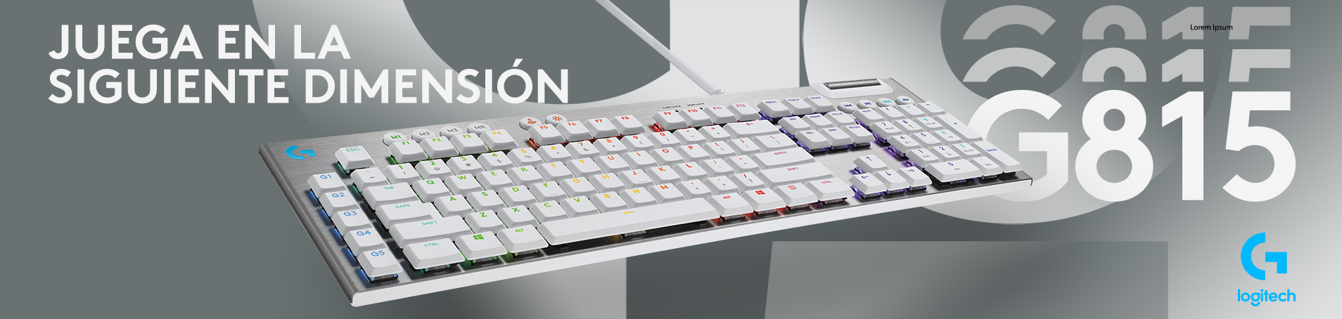 Tecnologías de juego avanzadas en un sofisticado diseño ultrafino. Totalmente personalizable, equipado con RGB LIGHTSYNC y teclas G específicas. Diseñado para un juego de alto desempeño con interruptores mecánicos GL de perfil bajo en versiones de click perceptible, táctil y lineal. Usa el G815 y juega en la siguiente dimensión.