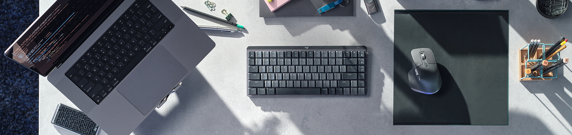 Siente cada momento de tu flujo de trabajo con más precisión, sensación táctil y desempeño, gracias a los clicks silenciosos y un sensor de seguimiento sobre cristal de 8.000 dpi.